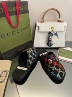 Gucci 男士 GG 拖鞋带马衔扣黑色男士 GG 鞋 694249