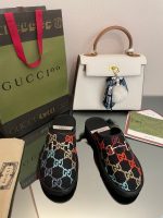 Gucci 男士 GG 拖鞋,带马衔扣黑色男士 GG 鞋 694249