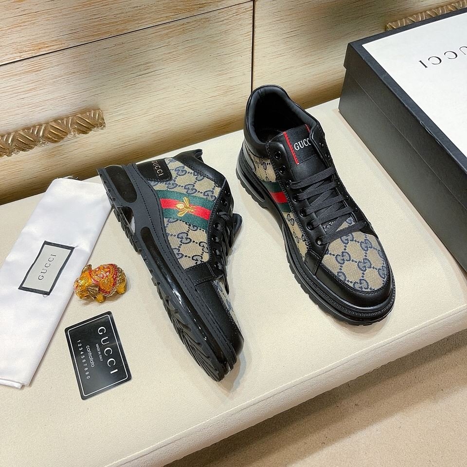 Gucci 男士 GG 织带和蜜蜂高帮运动鞋黑色
