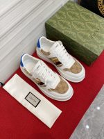 Gucci 男式白色和米色织带 GG 运动鞋 669698
