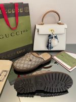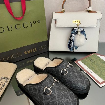 Gucci 男士马衔扣 GG 拖鞋 灰色 男士 GG 鞋 694249