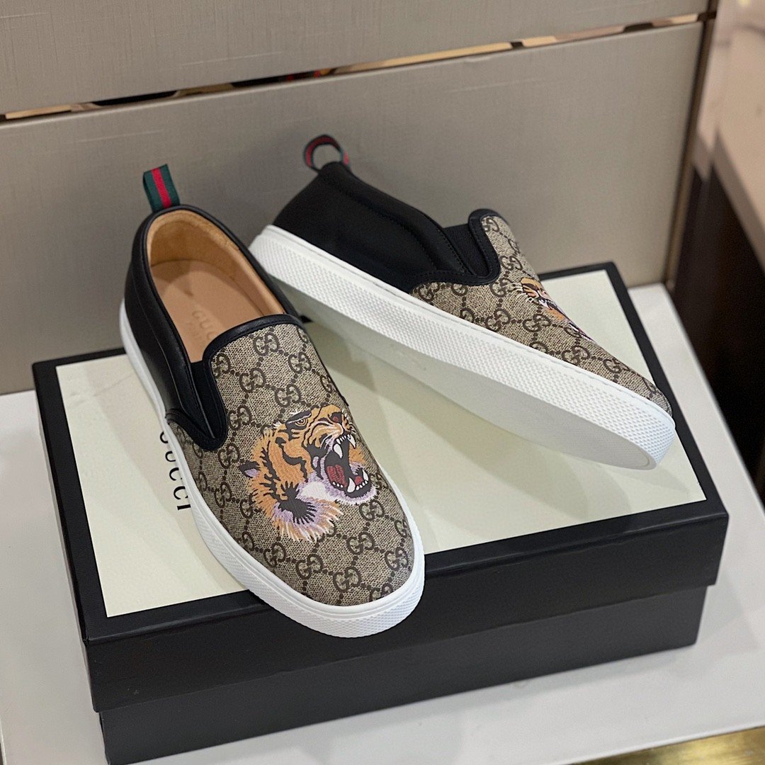 Gucci 男士 GG Supreme 一脚蹬虎纹黑色和灰色男士 456202 K5Z30 8979
