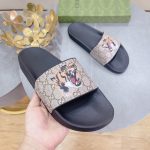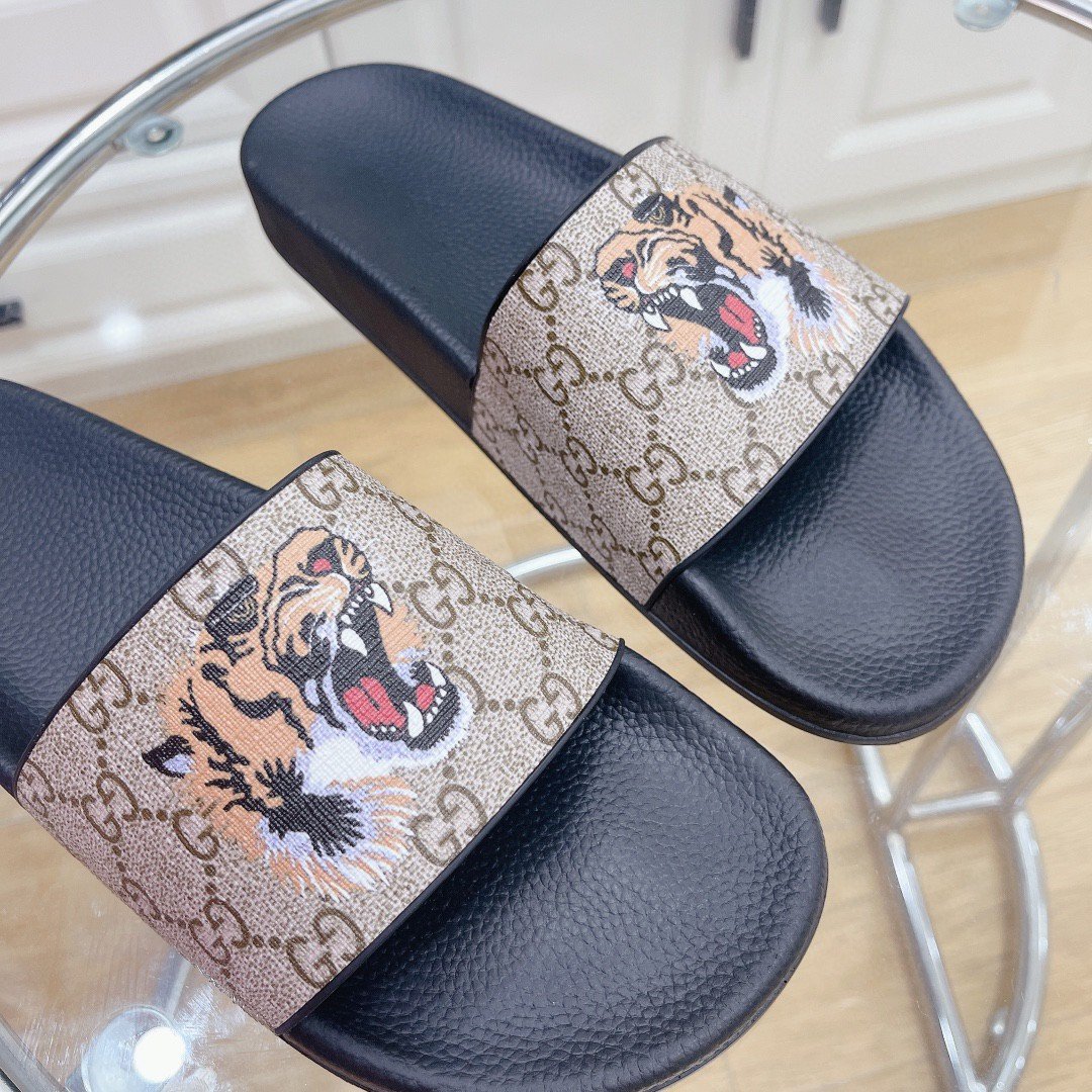 Gucci 男士 Gucci Supreme 虎纹拖鞋 黑色和灰色 男士 408508