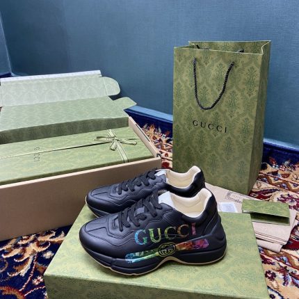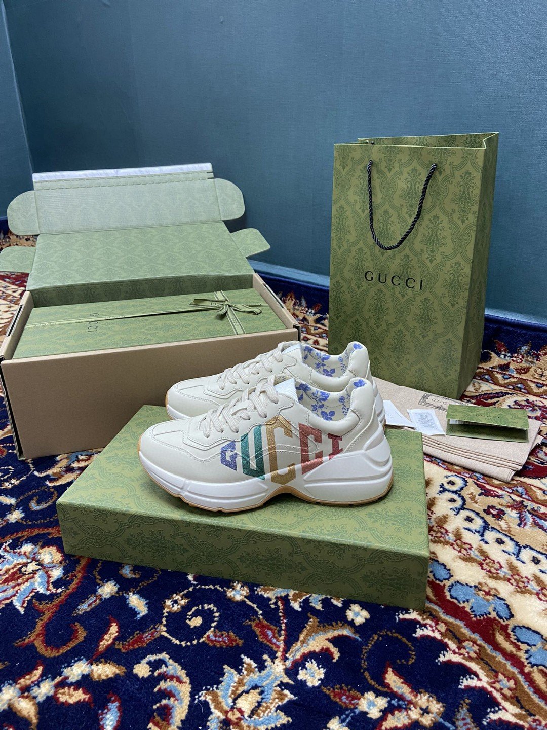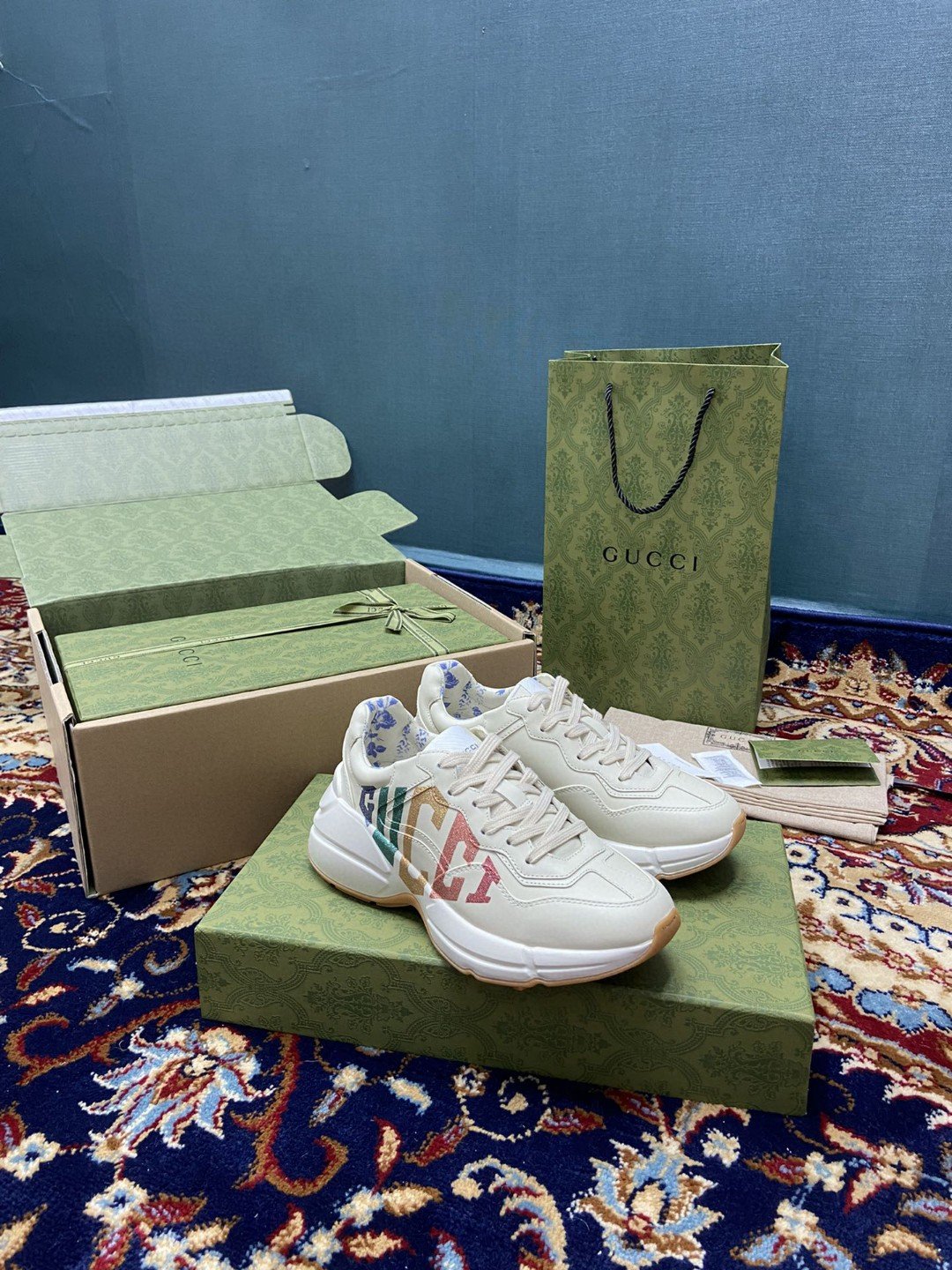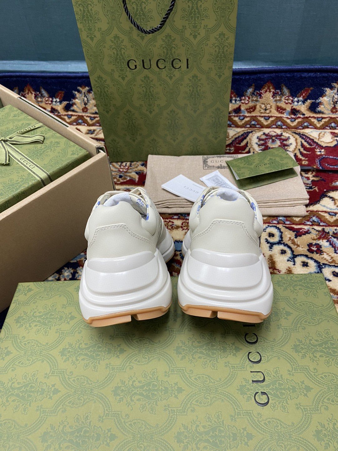 Gucci 男士 Rhyton 男士闪光白色象牙色运动鞋 524990 DRW00 9022