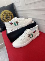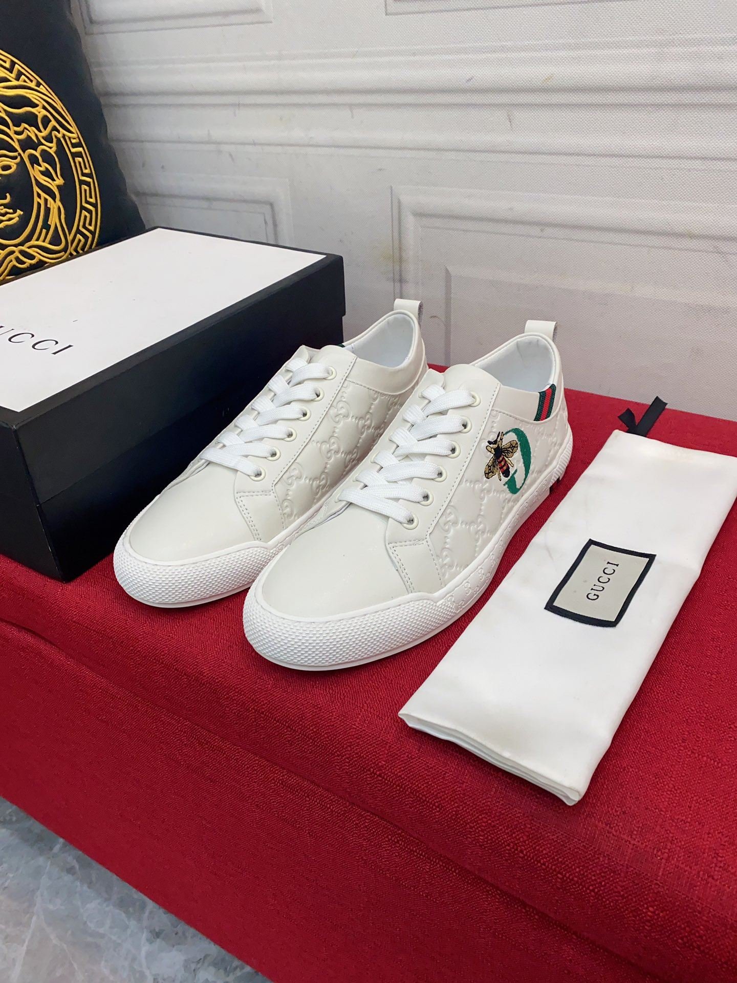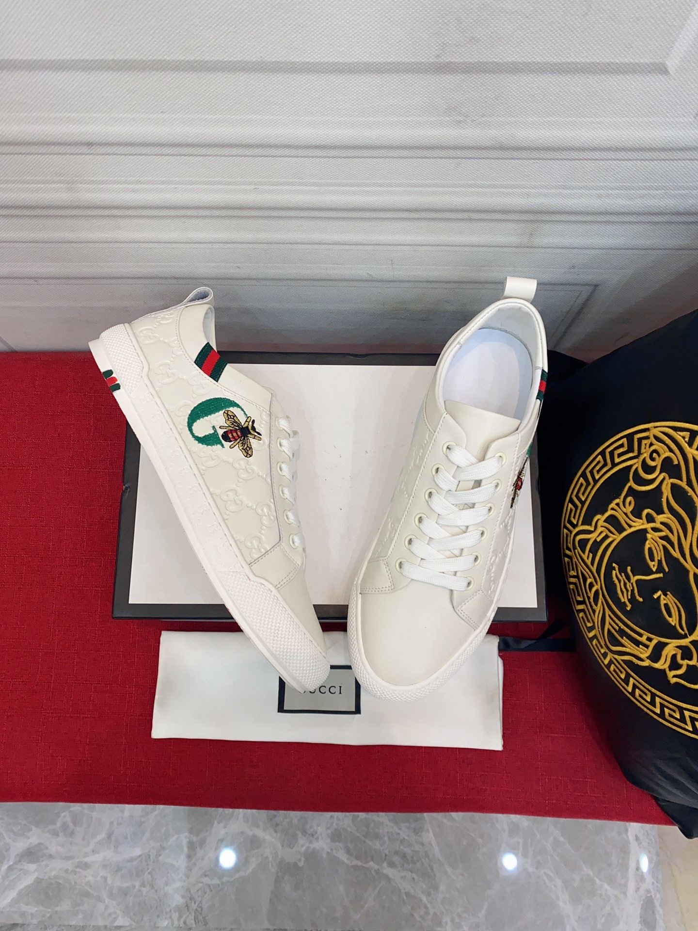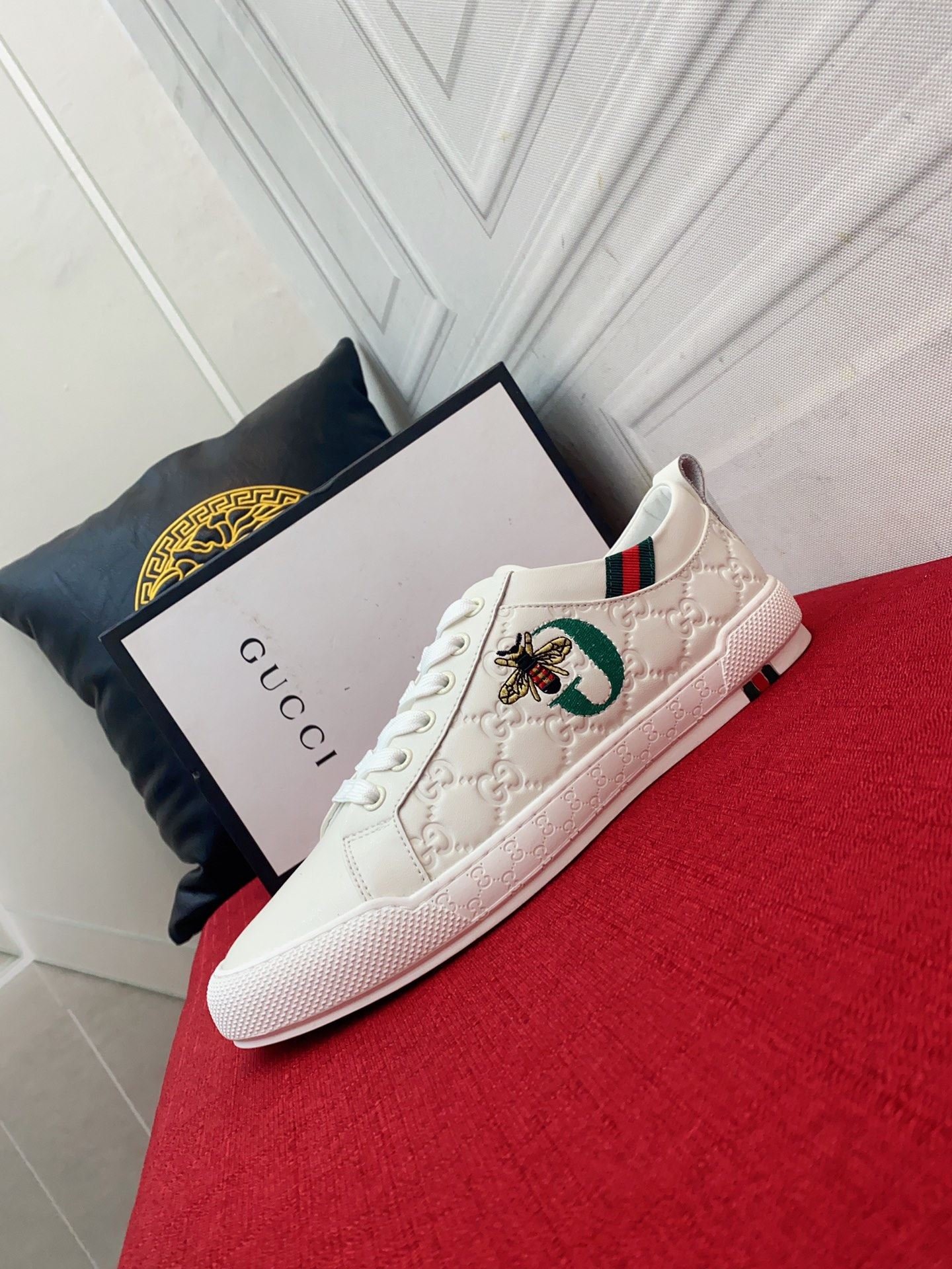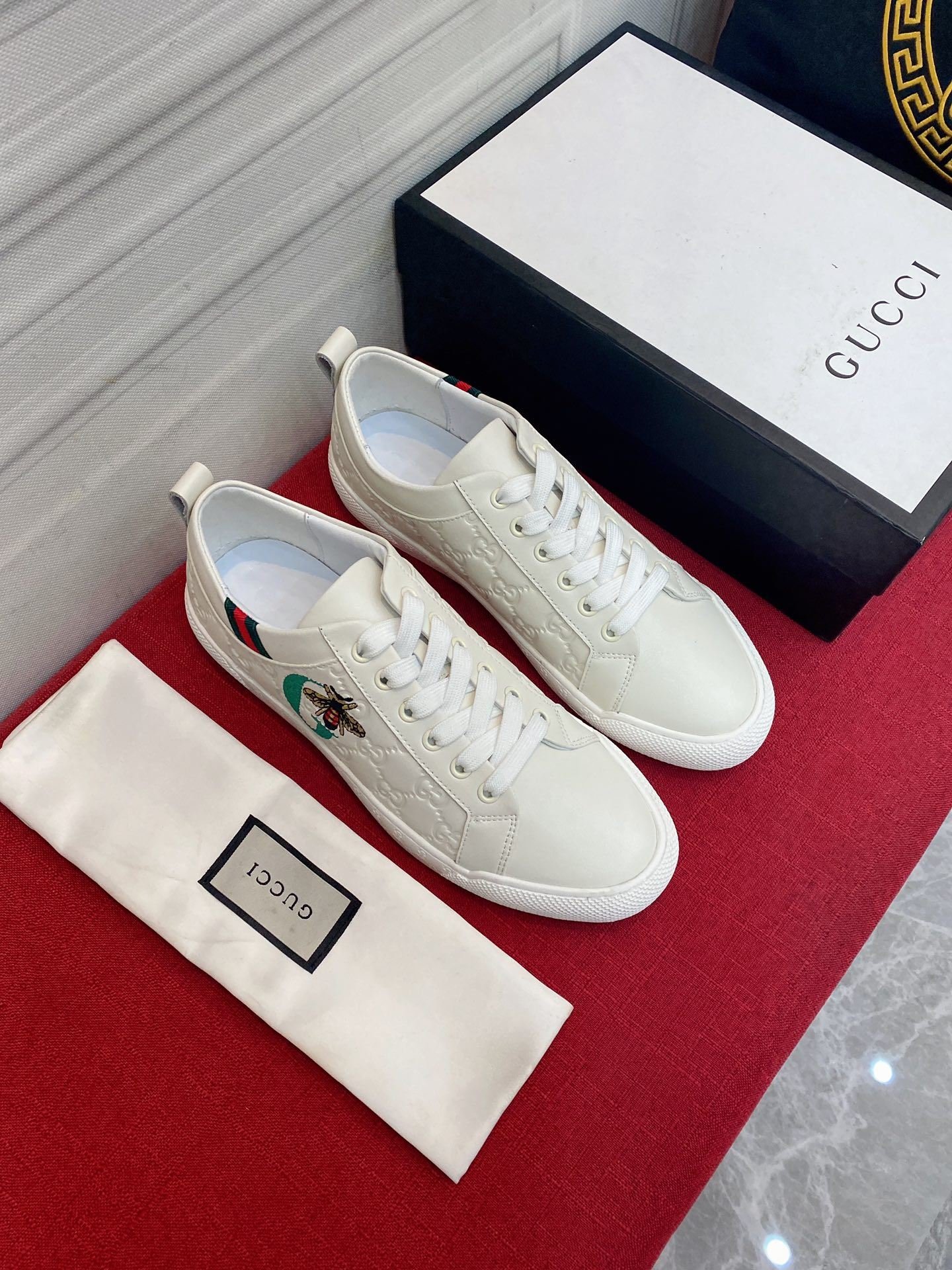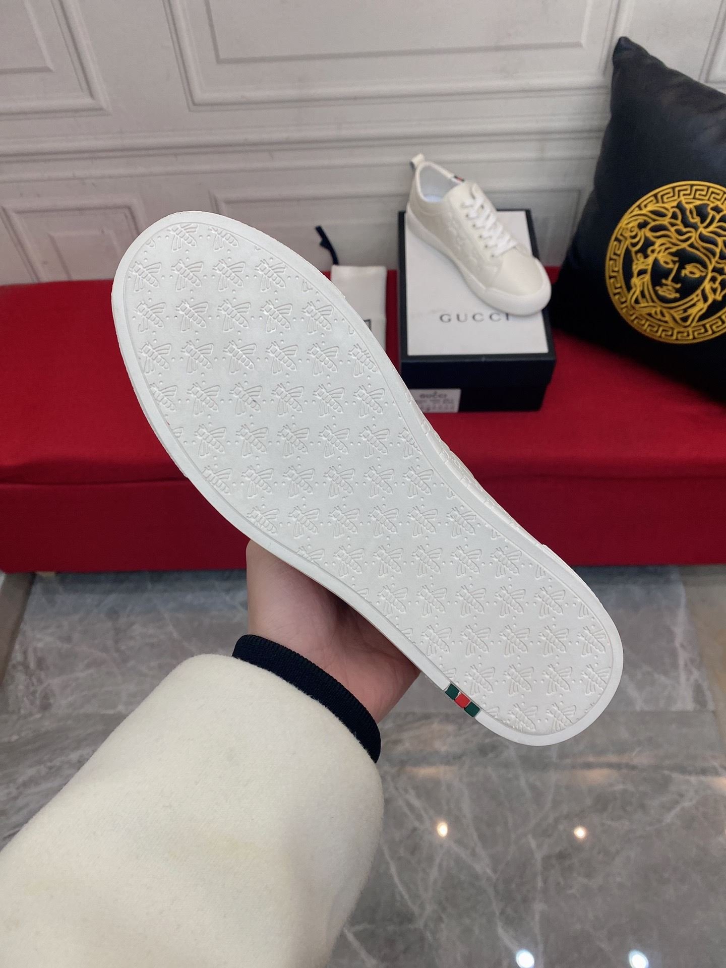 Gucci 男式 Ace GG 压花男式运动鞋,带 G 和蜜蜂白色 625787