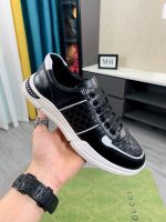 Gucci 男式 GG 压纹男士 Chucky 条纹运动鞋黑色