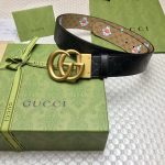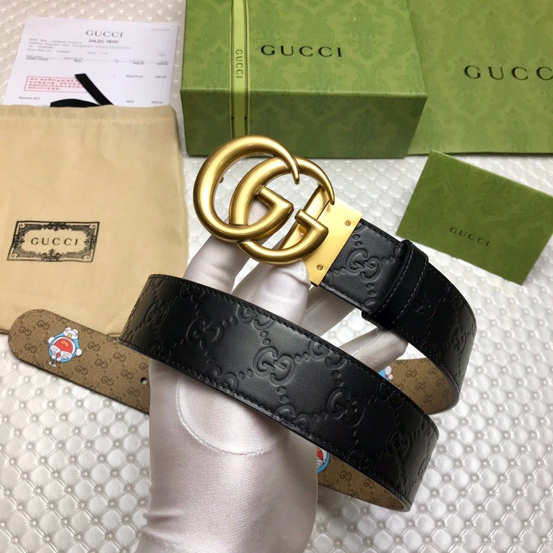 Gucci 签名款双 G 带扣 Doreamon 黑色女式腰带,女士腰带