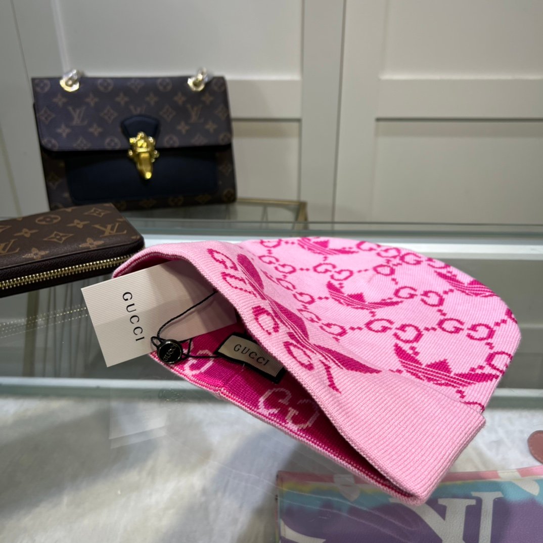 Gucci 粉色羊绒毛线帽