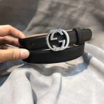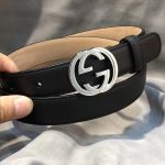 Gucci 腰带,带互扣式 G 扣黑色/奶油色 GG,女士腰带 370717
