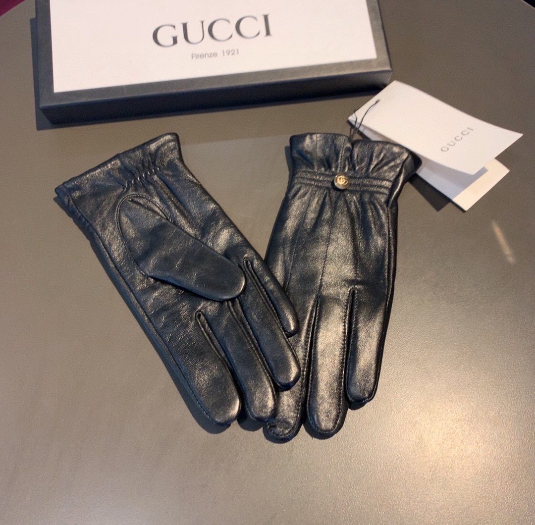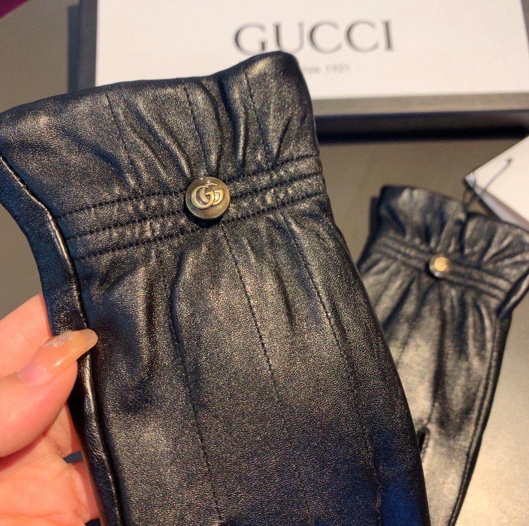 Gucci 黑色标志性双 G 图案手套