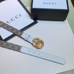 Gucci 双 G 带扣 GG 腰带米色/白色,女士腰带625839 92TLC 9761