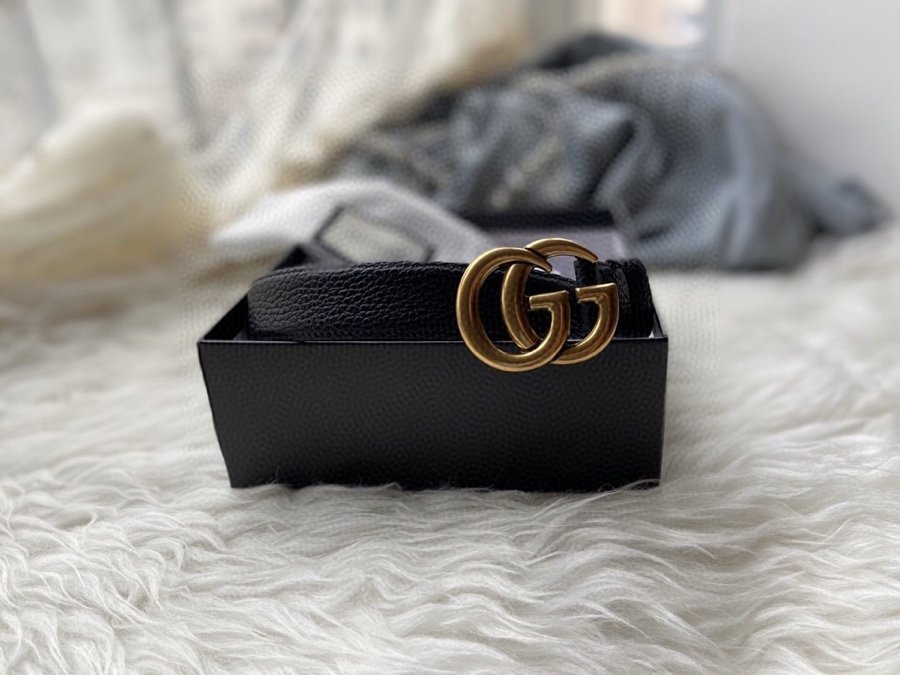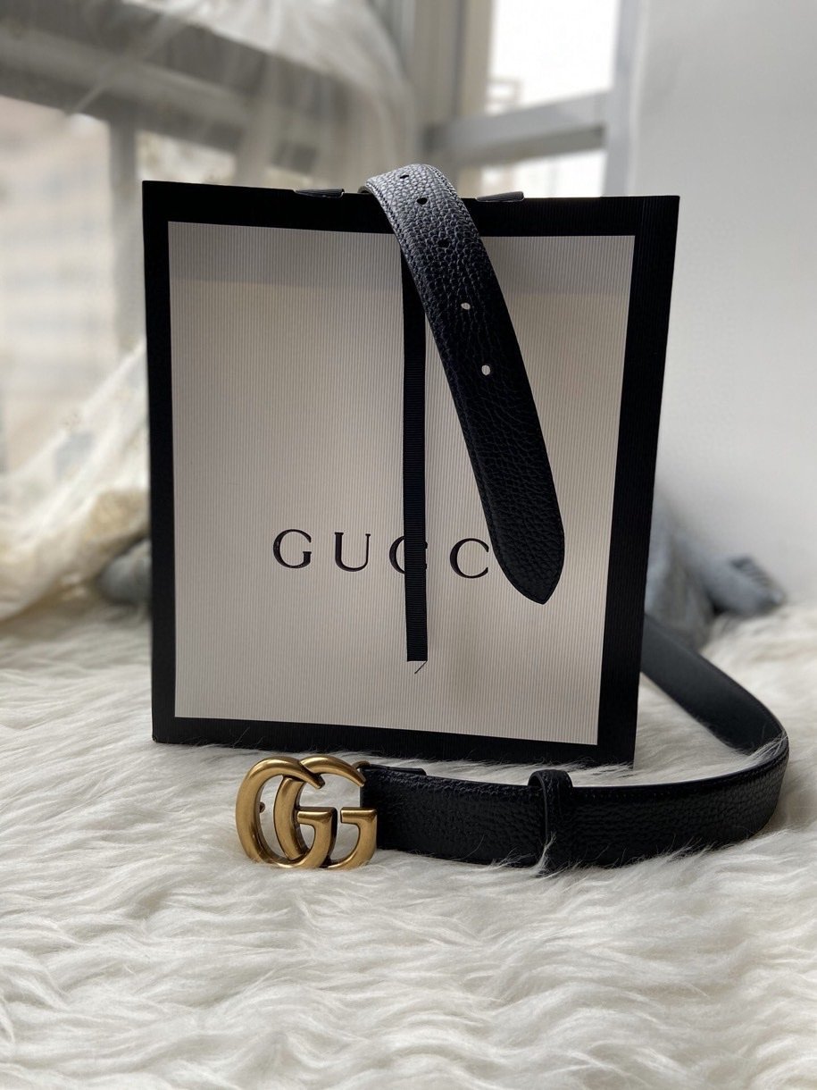 双面纹理腰带,饰有双 G 带扣。五金配件的灵感源自 70 年代的档案设计,这是品牌的标志性时代。