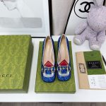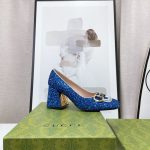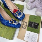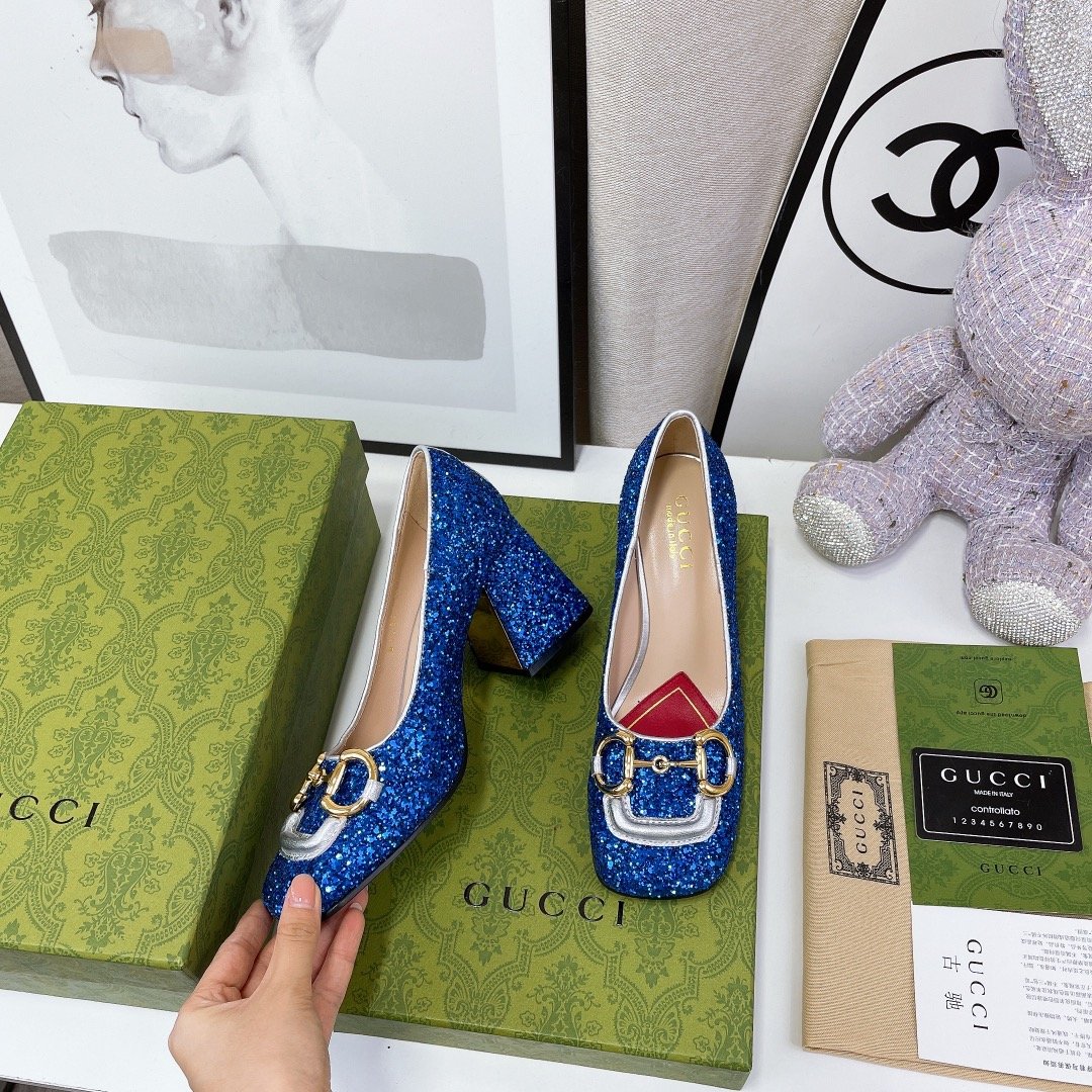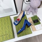 Gucci Lovelight 中跟水晶芭蕾平底鞋带马衔扣蓝色女式 GG