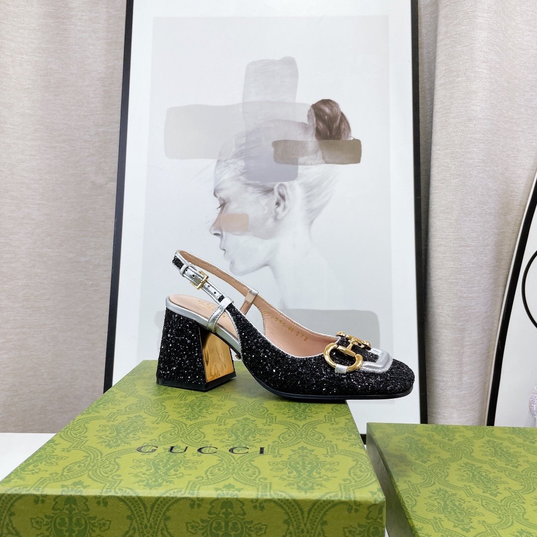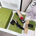 Gucci Lovelight 女士马衔扣露跟中跟鞋 黑色 GG