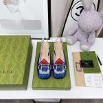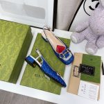 Gucci Lovelight 女士 GG 蓝色马衔扣露跟鞋