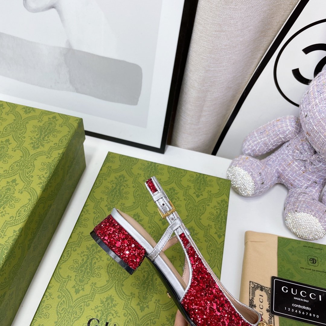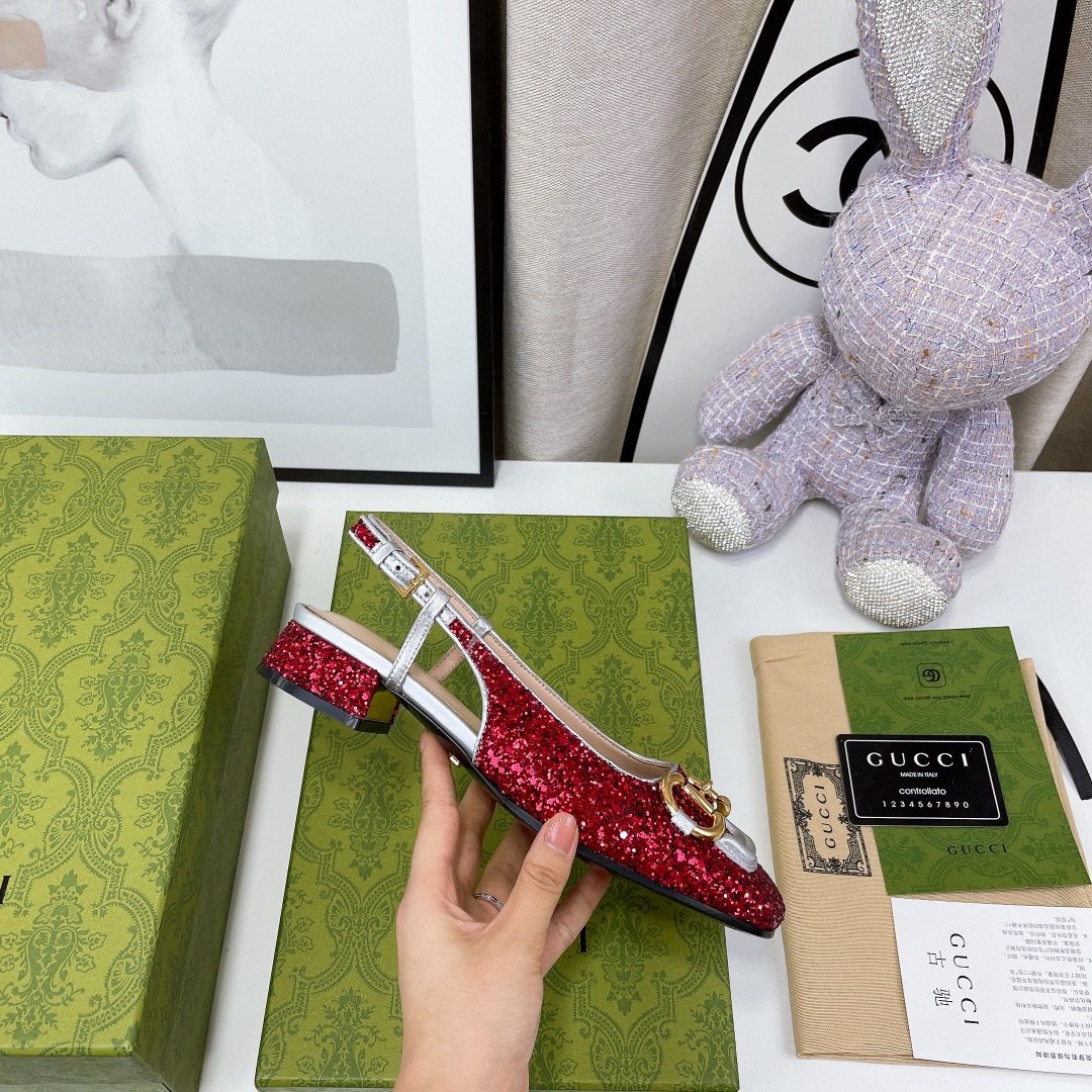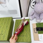 Gucci Lovelight 女式 GG Lovelight 红色马衔扣露跟鞋