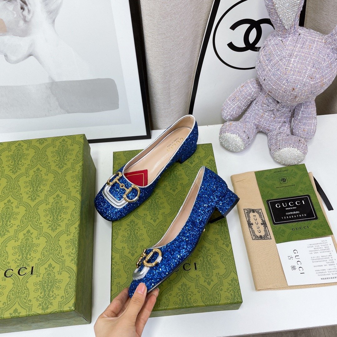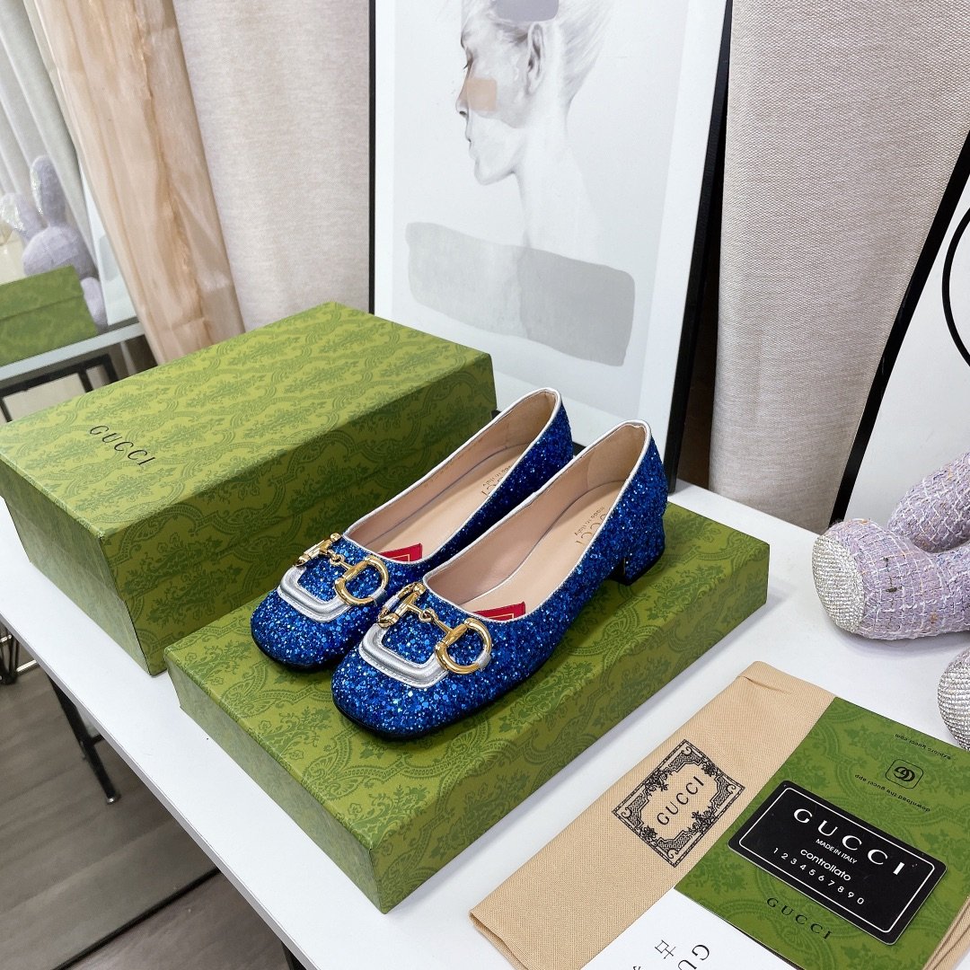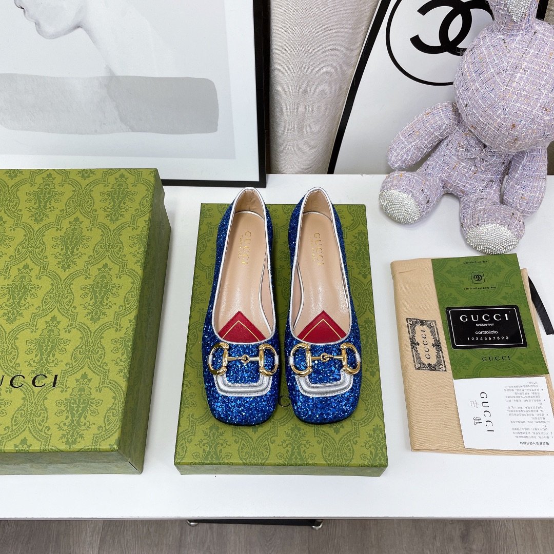 Gucci Lovelight 水晶芭蕾平底鞋 带马衔扣 蓝色 女式 GG