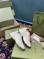米色射线运动鞋,厚底和笨重结构。新款 Exquisit Gucci 系列的新版鞋。