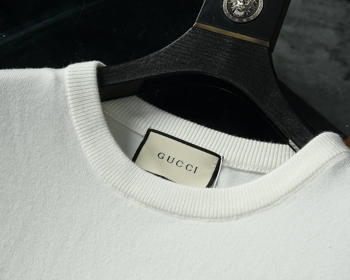 Gucci 男士羊毛提花蜜蜂徽标毛衣 白色