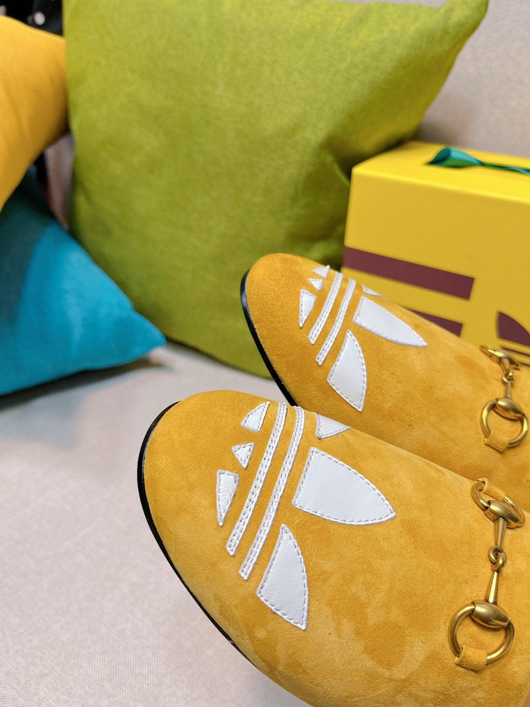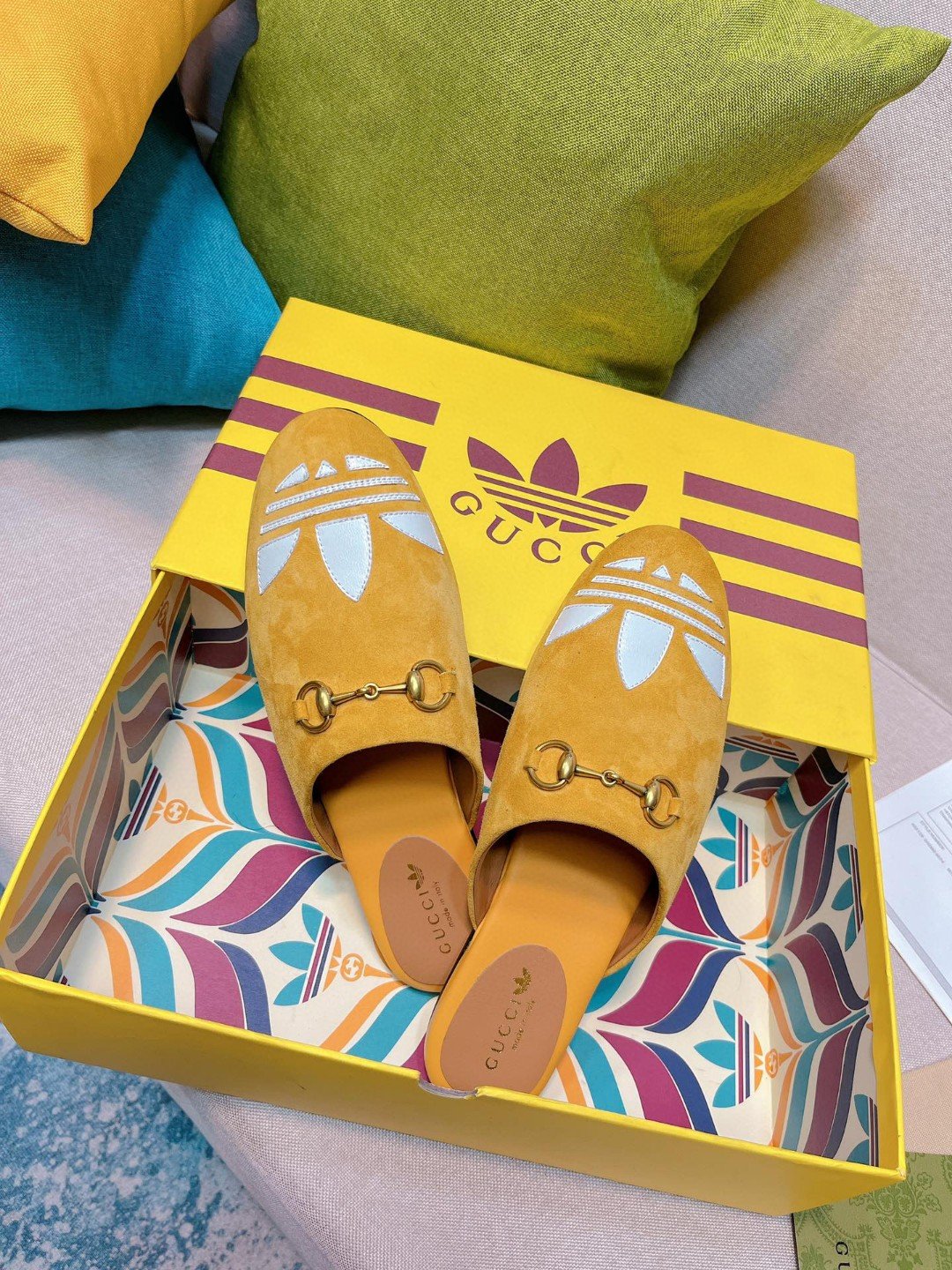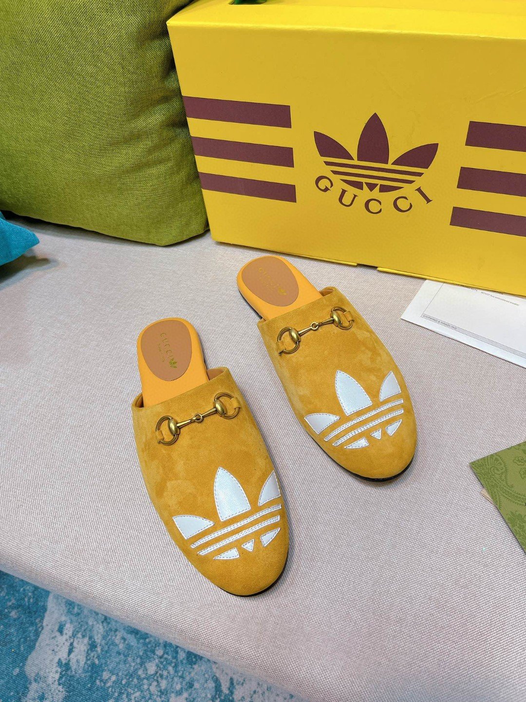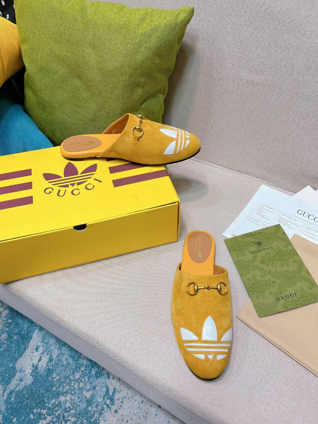 Gucci x 阿迪达斯女式 GG 三叶草拖鞋黄色 女式 GG 702211 DE8X0 7660