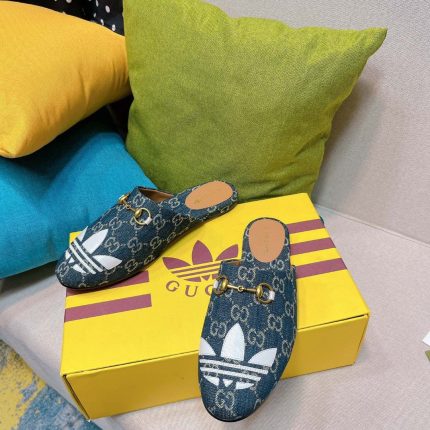 这款拖鞋属于 adidas * Gucci 系列,配有三叶草贴片。阿迪达斯 (adidas) 和古驰 (Gucci) 合作推出了一个系列,其中 Web 与三个白色条纹并列,而 GG 字母组合则与三叶草相结合。从创意总监对 80 年代和 90 年代的记忆中汲取灵感,标志性的 Houses 图案与历史悠久的运动服装品牌 adidas 的图案相融合,打造出一系列混合外观。