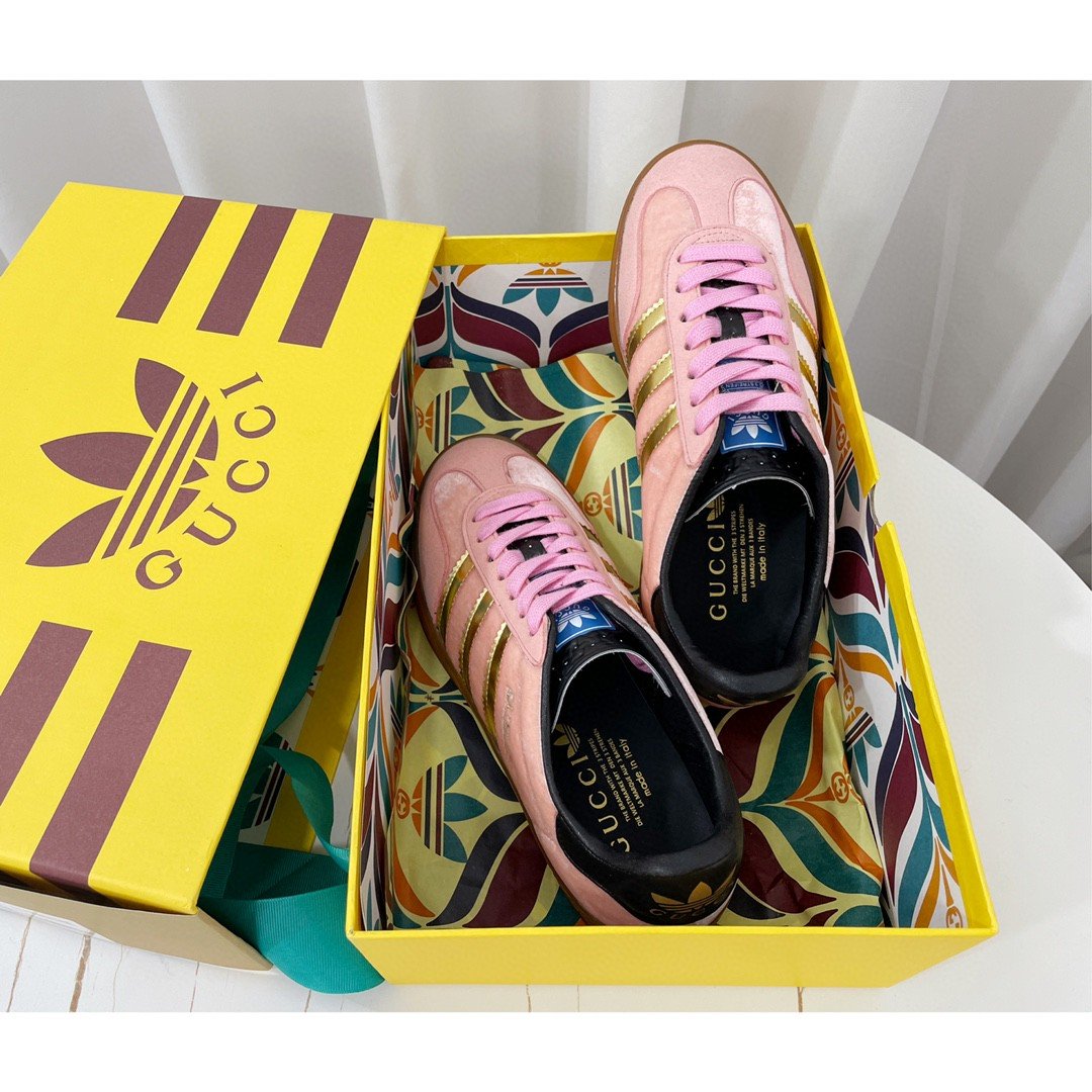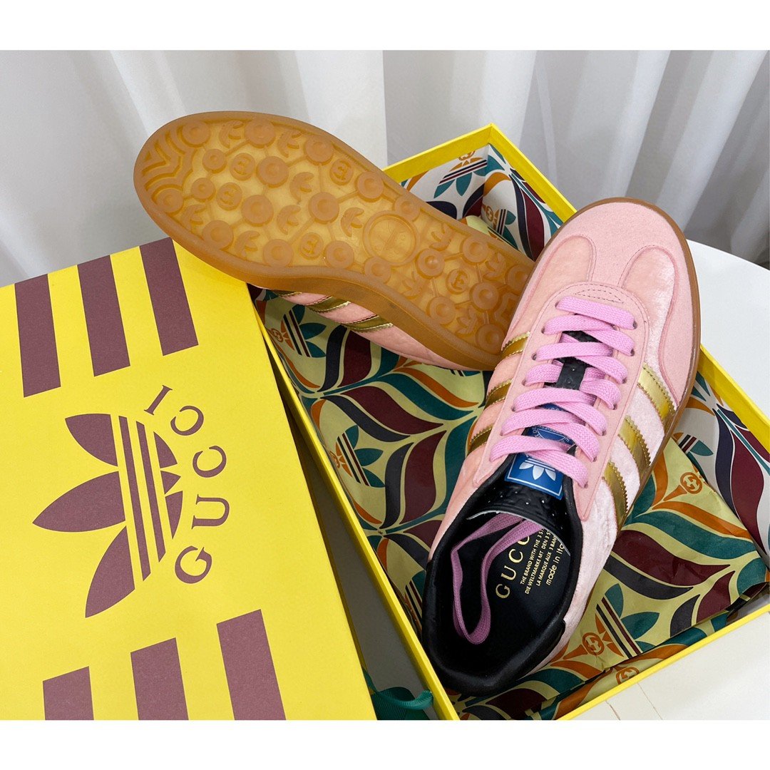 Gucci x Adidas 女式瞪羚运动鞋粉色天鹅绒 707864 9STU0 5960