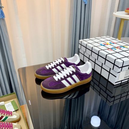 Gucci x Adidas 女式瞪羚运动鞋紫色/棕色 GG