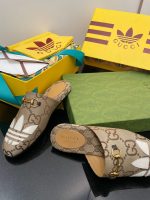 Gucci x Adidas 女式 GG 三叶草拖鞋 米色 女式 GG