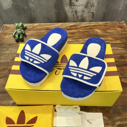 阿迪达斯和 Gucci 合作推出一个系列,其中 Web 与三个白色条纹并置,GG 字母组合与三叶草。创意总监从 80 年代和 90 年代的记忆中汲取灵感,标志性的 Houses 图案与历史悠久的运动服装品牌 adidas 的图案相融合,打造出一系列混合外观。这些男士 GG 厚底凉鞋有三叶草补丁。