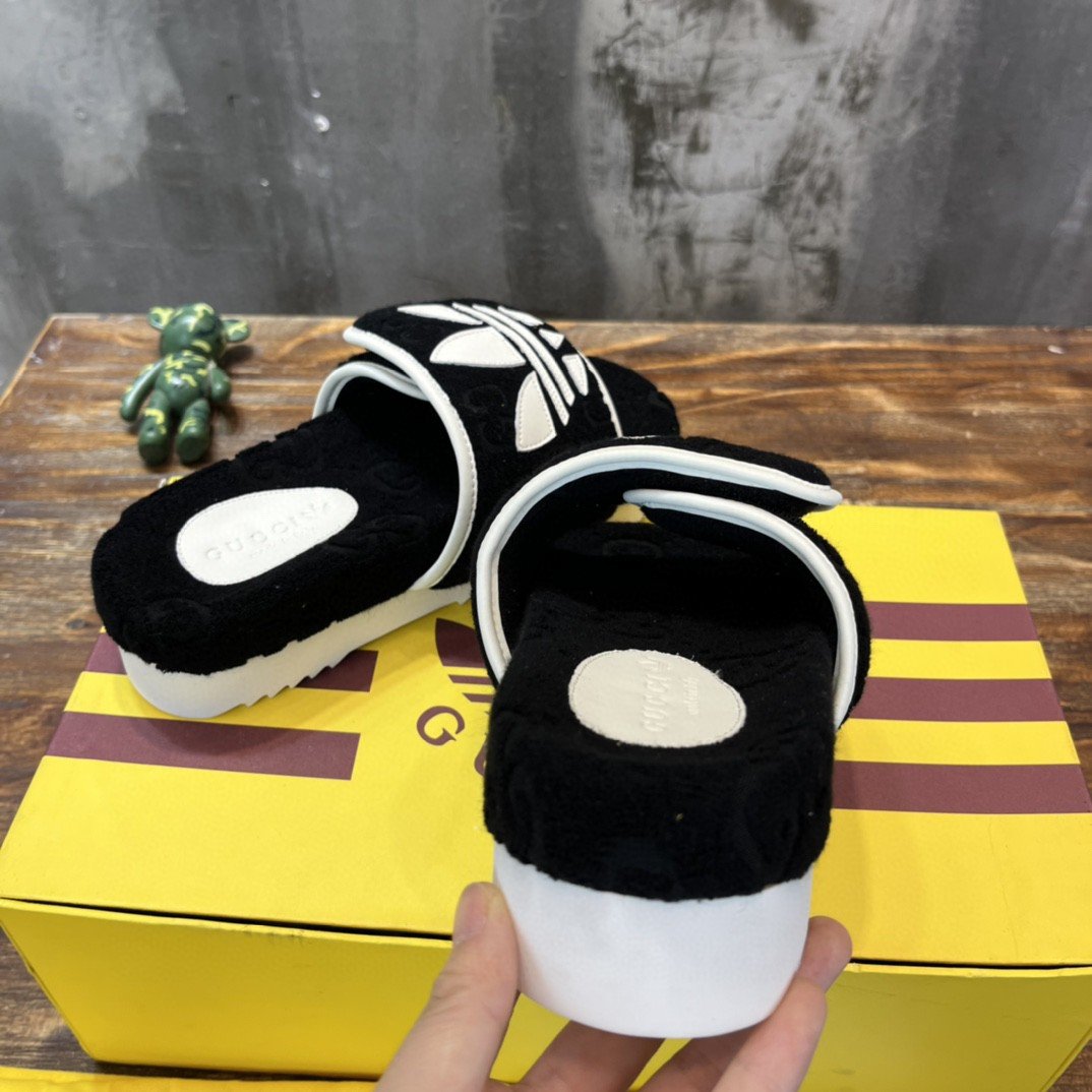 Gucci x Adidas 男士厚底 GG 凉鞋黑色 702412