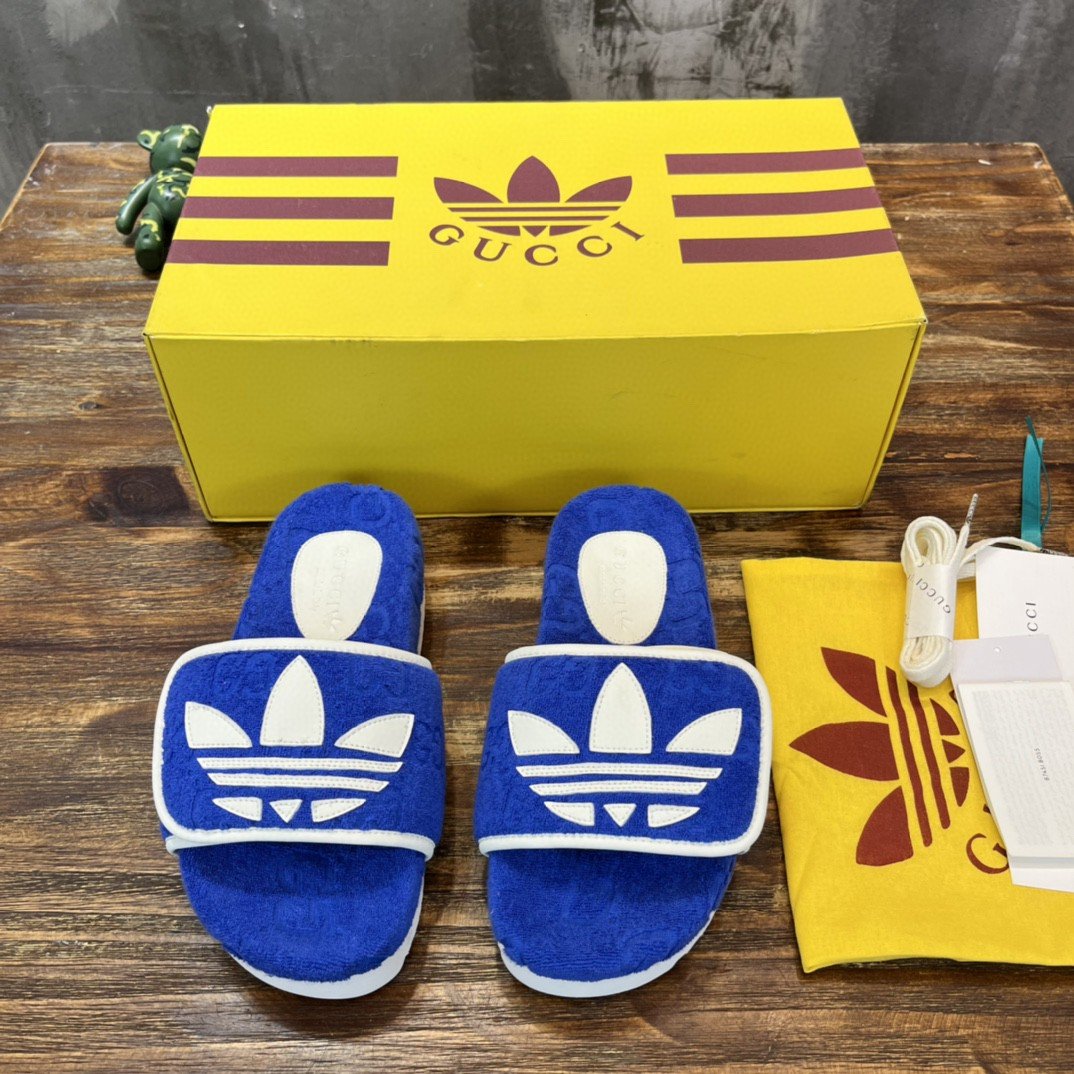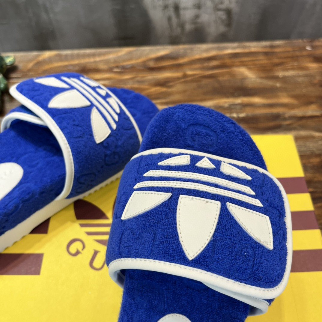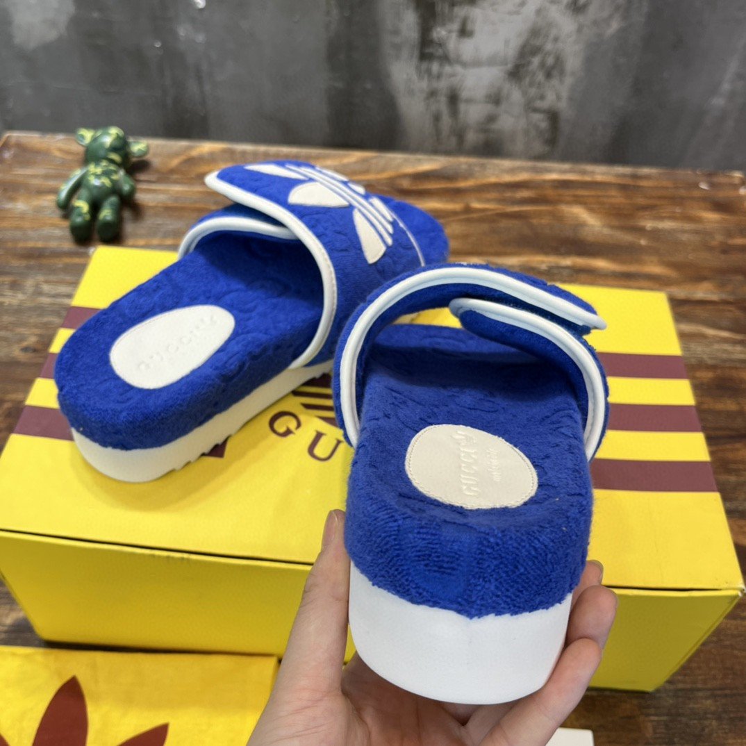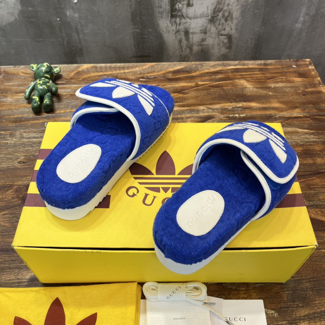 Gucci x Adidas 男士厚底 GG 蓝色凉鞋 702412 UU010 4160