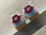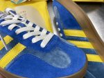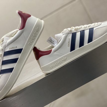 标志性 Houses 图案与历史悠久的运动服装品牌阿迪达斯的图案相融合。该系列将两种传统融合在三条线条中,阿迪达斯和古驰将经典标志融为一体。创意总监 Alessandro Michele 从 80 年代和 90 年代的记忆中汲取灵感,打造出既怀旧又现代的系列。这些瞪羚运动鞋有三叶草印花和条纹。