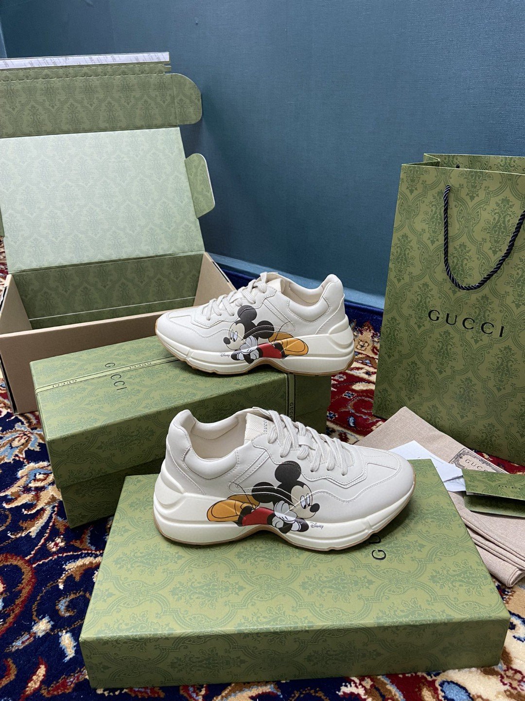 Gucci * 迪士尼女式米老鼠白色象牙色 Rhyton 运动鞋女式 602049 DRW00 9522