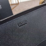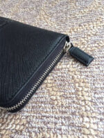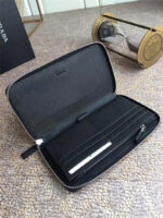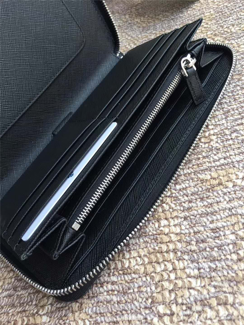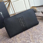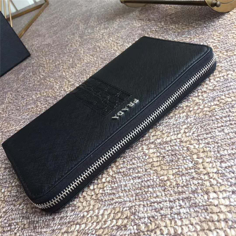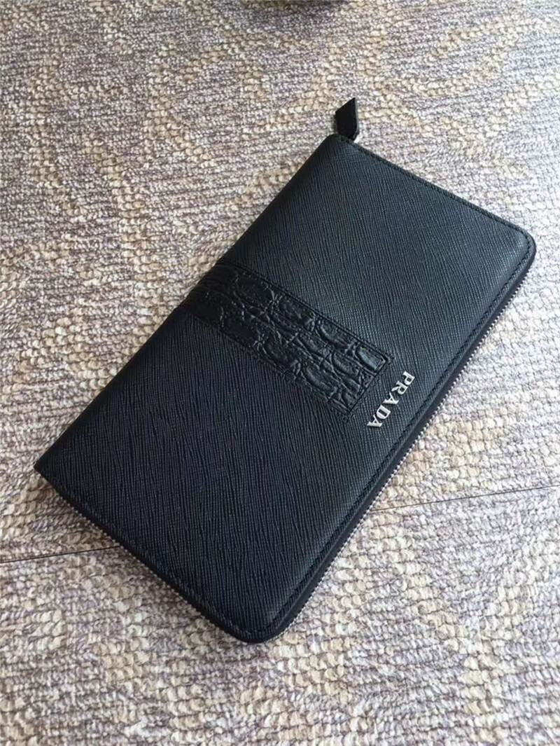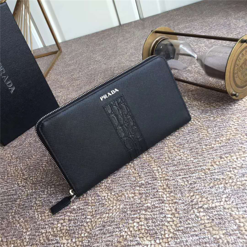 H188G Prada普拉达 十字纹牛皮配鳄鱼皮 拉链长款夹 黑色