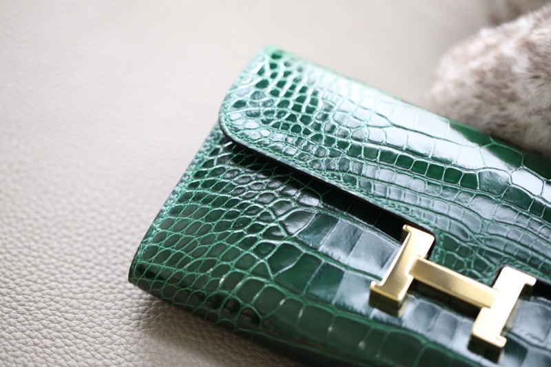 - Hermes钱包 爱马仕Constance大康钱包 纯手工顶级美洲鳄鱼皮 祖母绿