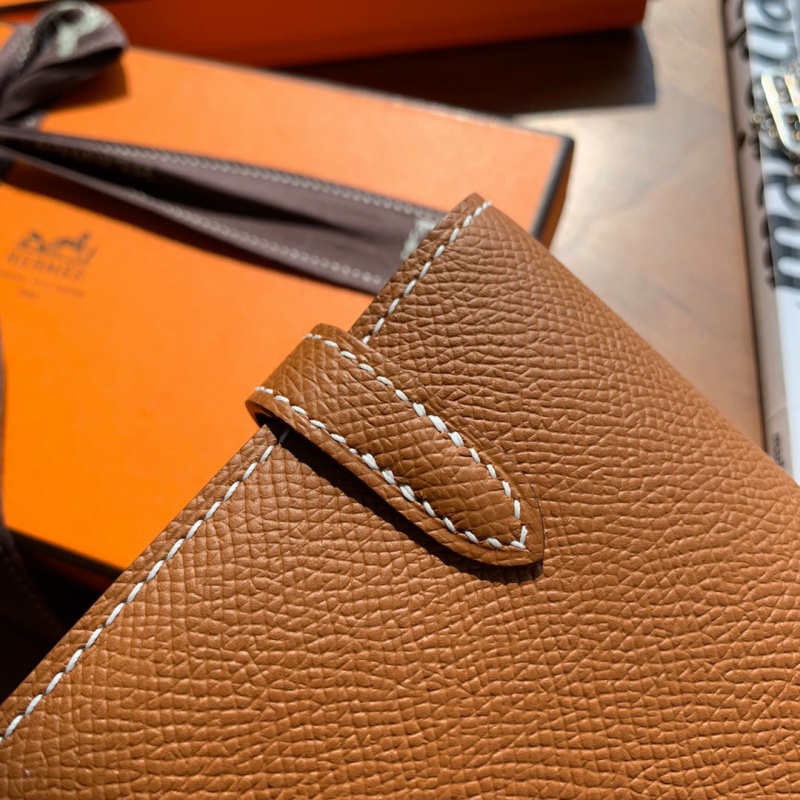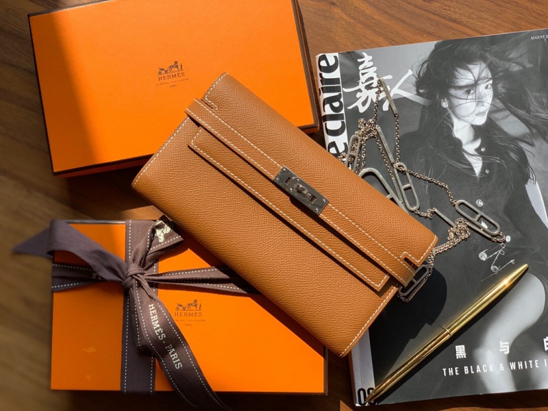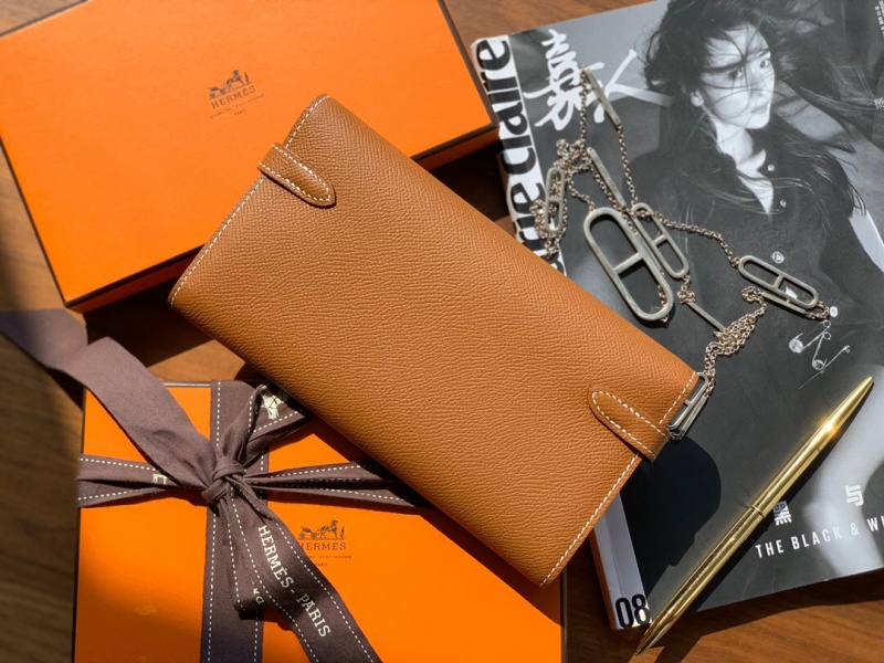 - Hermes钱包 爱马仕Kelly钱包 纯手工顶级Epsom皮 棕色银扣