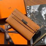- 结构:凯莉小牛皮长钱包,配有12个卡槽,2个钞票口袋,拉链零钱包及镀钯Kelly锁扣