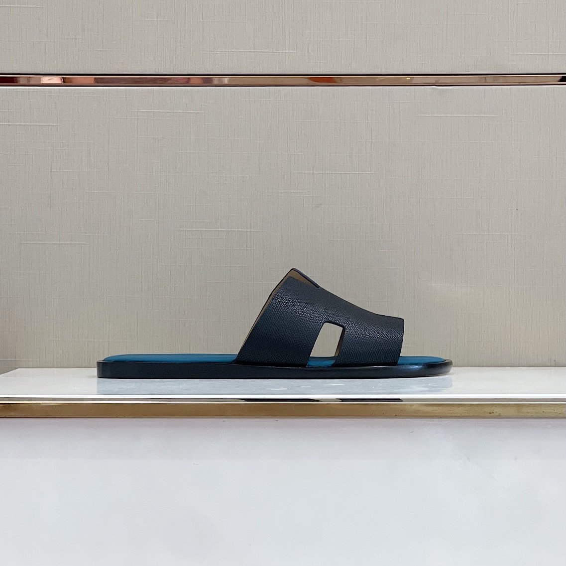 凉鞋采用标志性“H”形镂空和 Nappa 滚边