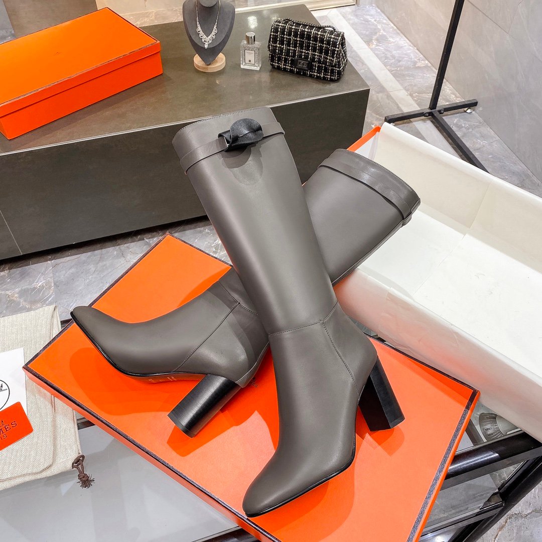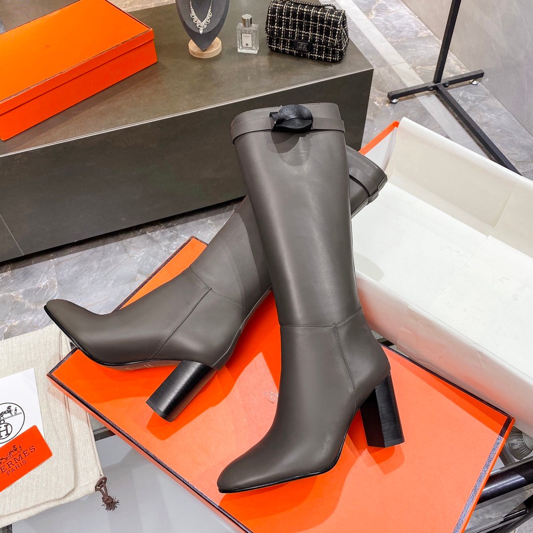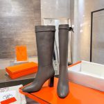 Hermes 女式灰色高跟靴 3.54 英寸/9 厘米