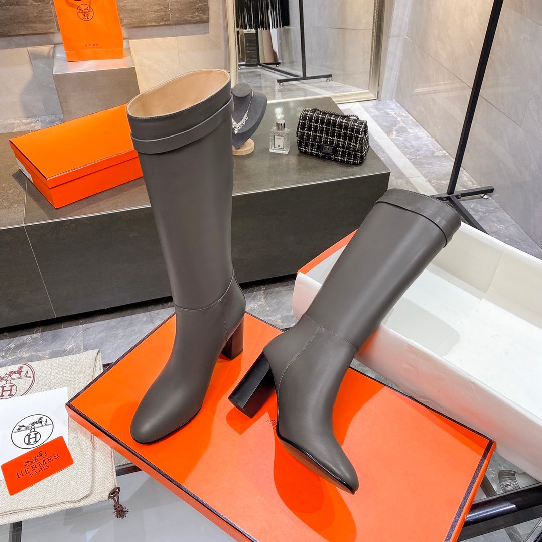 爱马仕女式高跟靴灰色 3.54 英寸/9 厘米