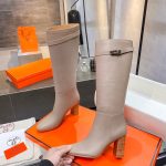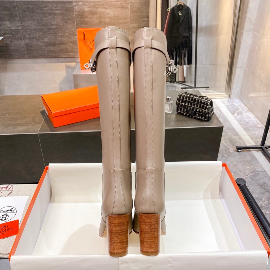 爱马仕女式高跟靴米色 3.54 英寸/9 厘米