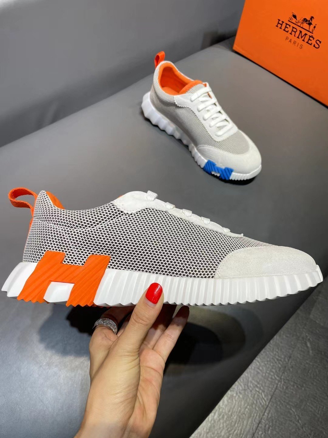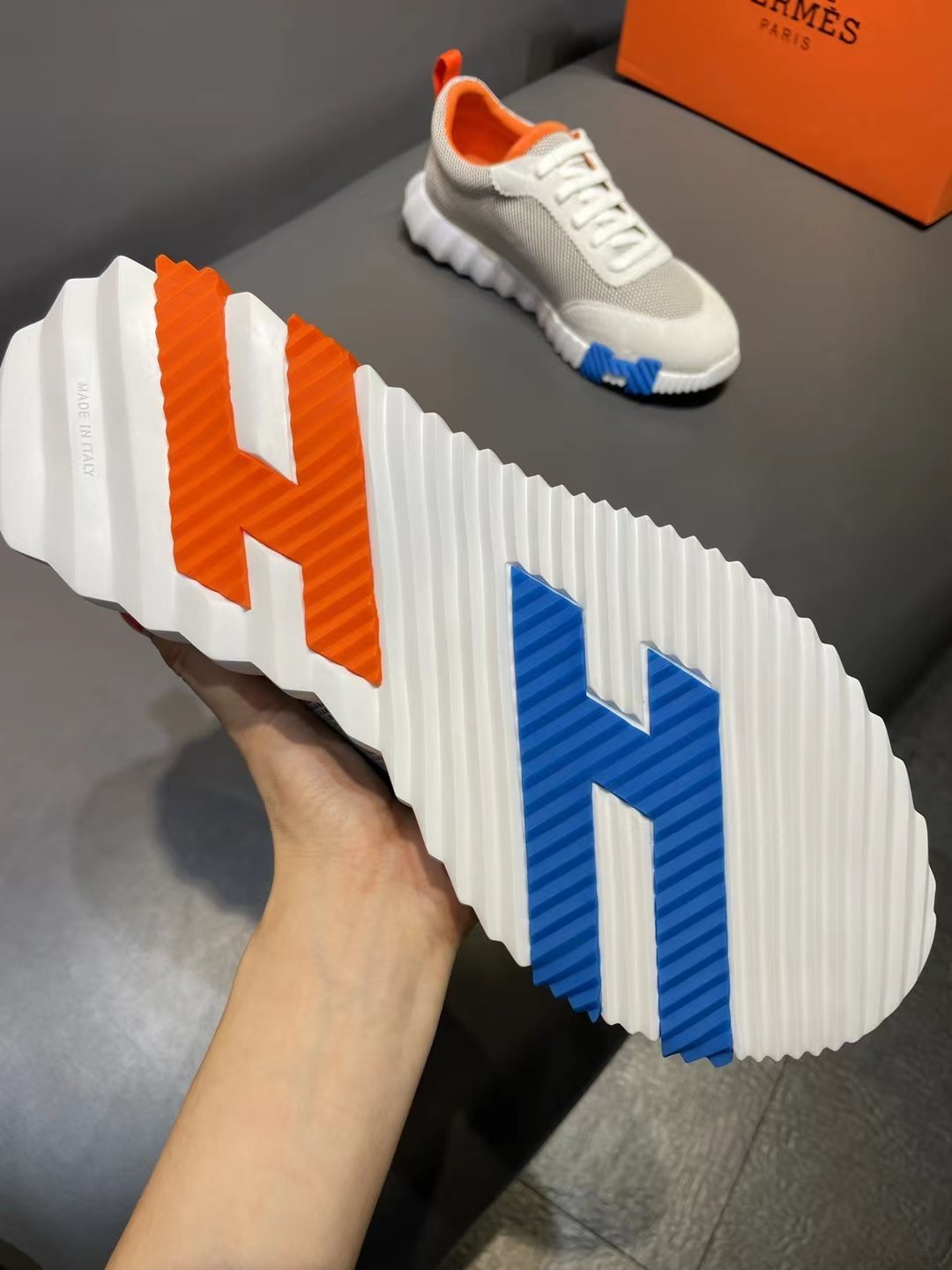 爱马仕男士弹跳运动鞋米色 H221897ZHMB395