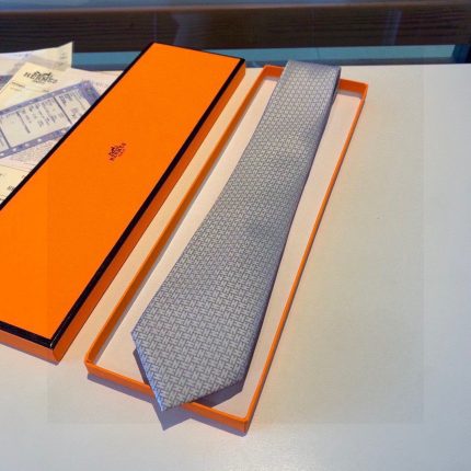 Hermes 领带 螺旋图案 灰色 Hermes 男士领带