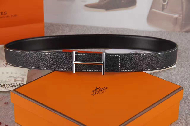 - HERMES 2017经典款 进口牛皮 原版 不锈钢扣头 银扣黑色带身