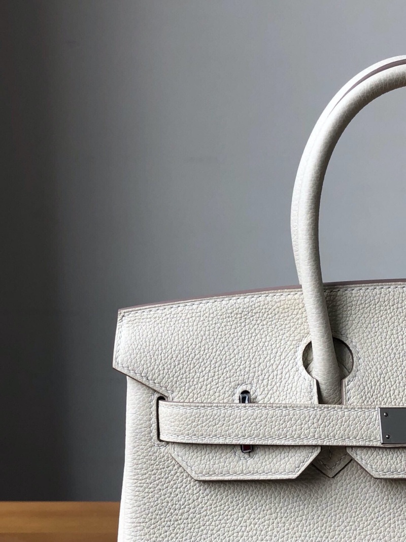 • Hermes Birkin系列 铂金包 纯手工定制版 30cm TOGO皮 奶昔白