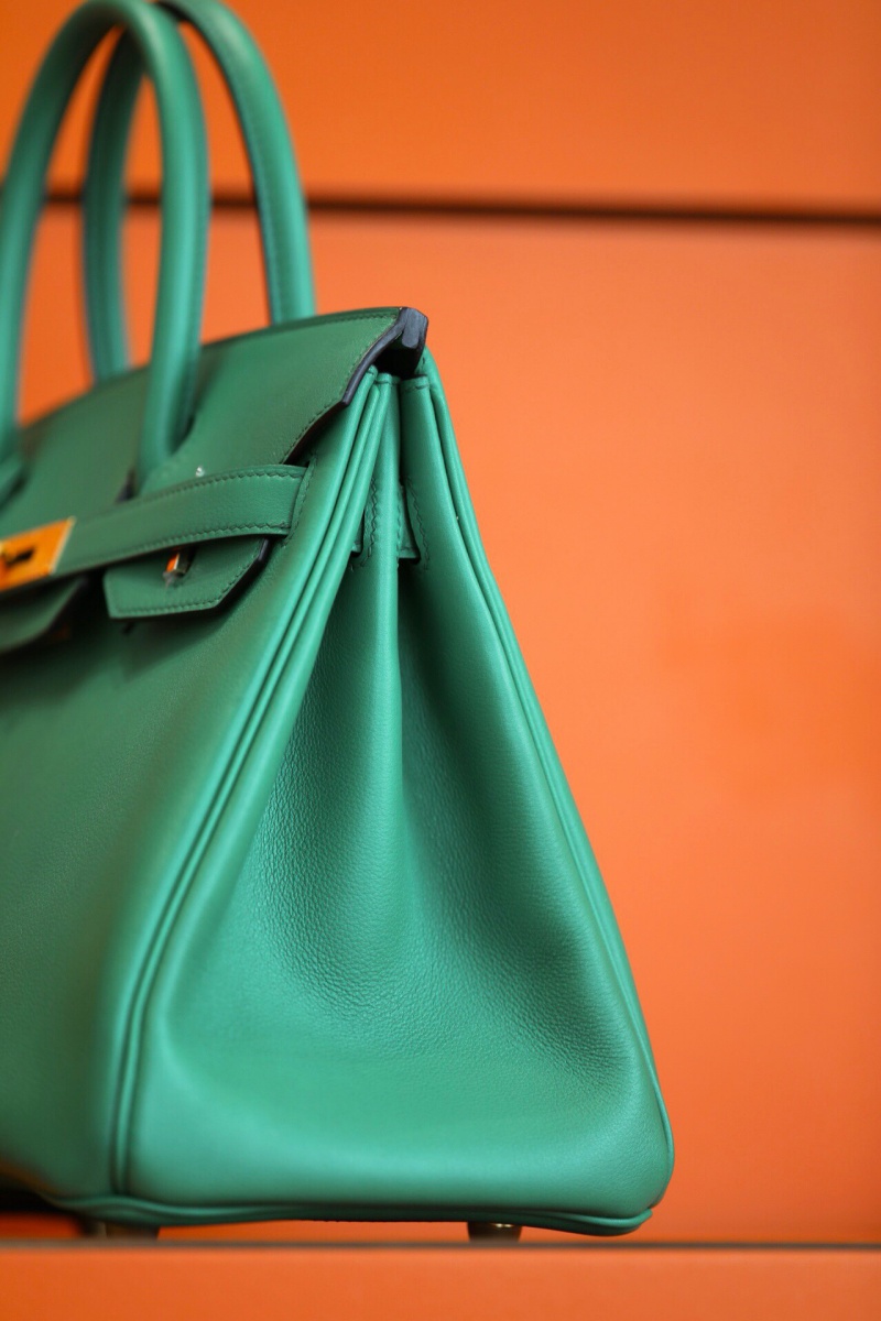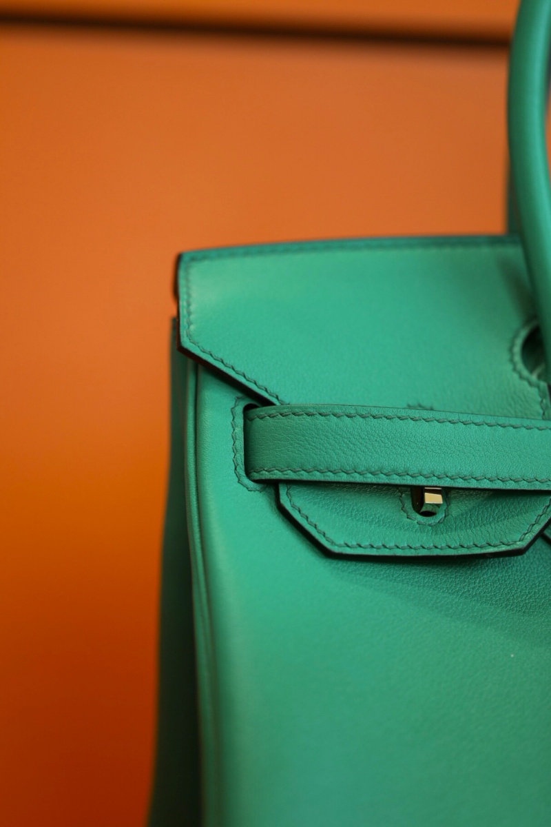 - Hermes Birkin系列 爱马仕铂金包 纯手工定制版 30cm TOGO皮 丝绒绿