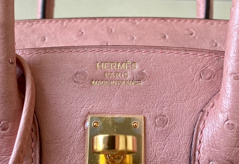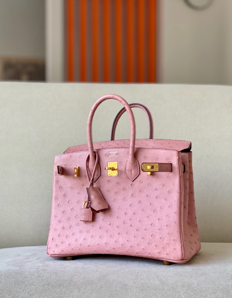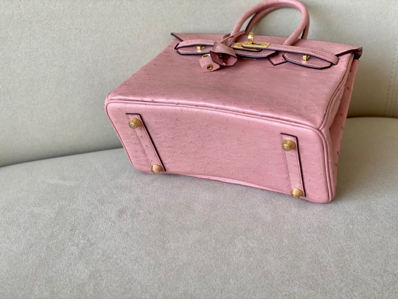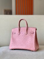 - Hermes Birkin25 爱马仕铂金包 纯手工定制版 鸵鸟皮 陶瓷粉