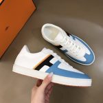 印花 Epsom 简约运动鞋,标志性橙色鞋底。现代时尚的外观。
