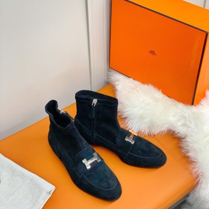 Hermes Brooke 女式踝靴黑色 2.4 英寸/6 厘米