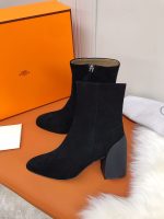 Hermes Brooke 女式黑色踝靴 2.4 英寸/6 厘米